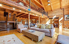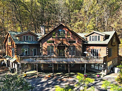 Gorgeous 7 BR, 5 BA Pocono Log Home with forced air heat, central air, & built-in 2 car garage on 1 acre! Open concept kit & DR soaring cathedral ceilings & striking wall of windows overlooking serene Pocono wilderness! Striking 2 story stone FP! 2 primary suites on the main floor. Oversized Loft. 2 tiered deck! #PM-137447